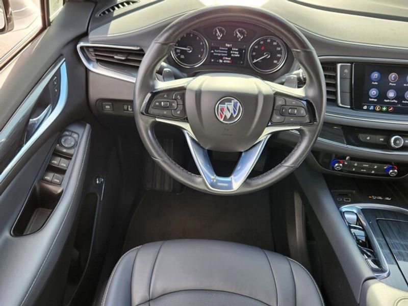 Protect this 2023 Buick Enclave from unwanted accidents with a cutting edge backup camera system. Keep your hands warm all winter with a heated steering wheel in this model . Never get into a cold vehicle again with the remote start feature on this 2023 Buick Enclave . This 2023 Buick Enclave 's Lane Departure Warning keeps you safe by alerting you when you drift from your lane. Bluetooth technology is built into this 2023 Buick Enclave , keeping your hands on the steering wheel and your focus on the road. This Buick Enclave has only one previous owner, verified by AutoCheck. The state of the art park assist system will guide you easily into any spot. The leather seats in this unit are a must for buyers looking for comfort, durability, and style. This 2023 Buick Enclave has a clean AutoCheck report, ensuring its impeccable vehicle history. The vehicle stays safely in its lane with Lane Keep Assist.