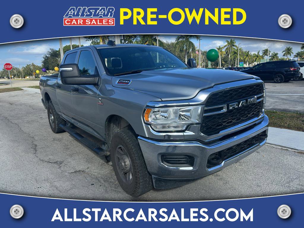 It is equipped with the latest generation of XM/Sirius Radio. Apple CarPlay: Seamless smartphone integration for this Ram 2500 - stay connected and entertained on the go! This model has satellite radio capabilities. This vehicle has a clean AutoCheck report. This unit's AutoCheck: 1 owner, assurance of single-owner history for peace of mind. The Ram 2500 features a hands-free Bluetooth phone system. See what's behind you with the back up camera on this 2023 Ram 2500 . It comes equipped with Android Auto for seamless smartphone integration on the road. The vehicle has a 6 Cyl, 6.7L high output engine. This 3/4 ton pickup has four wheel drive capabilities. Greater towing safety becomes standard with the installed trailer brake. Quickly unlock this model with keyless entry. This model gleams with an elegant silver clear coated finish. This vehicle has an automatic transmission. The Electronic Stability Control will keep you on your intended path.