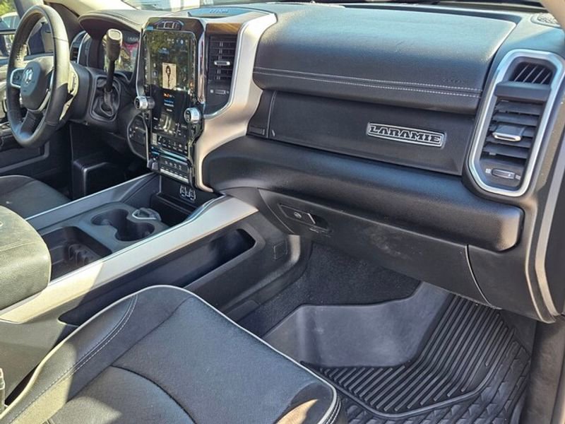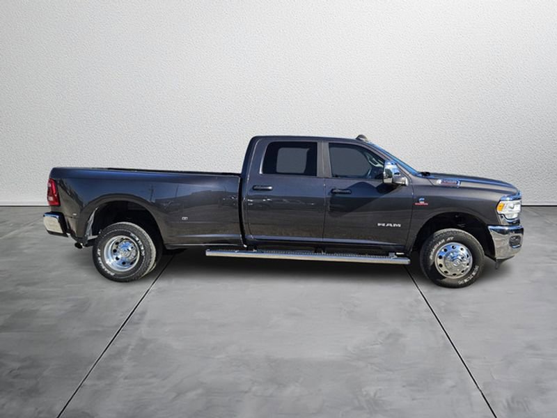 Laramie Level 1 Equipment Group: Google Android Auto; Rear Window Defroster; Blind Spot and Cross Path Detection; Rain Sensitive Windshield Wipers; LED Tail Lamps; Power Adjustable Pedals with Memory; Rear Power Sliding Window; Integrated Voice Command with Bluetooth; Connectivity - US/Canada; 12" Touchscreen Display; Auto Power-Folding Mirrors; GPS Navigation; GPS Antenna Input; Exterior Mirrors with Heating Element; Auto Dimming Exterior Mirrors; SiriusXM with 360L; Connected Travel and Traffic Services; Front LED Fog Lamps; LED Reflector Headlamps; Mirror Running Lights; Foam Bottle Insert (door Trim Panel); Alexa Built-In; Apple CarPlay; Power-Adjustable Convex Aux Mirrors; Off-Road Information Pages; Forward and Reverse Utility Lights; Selectable Tire Fill Alert; Trailer Tow Pages; Disassociated Touchscreen Display; HD Radio; Uconnect 5 Navigation with 12.0" Display Radio; Power Heat Fold Memory Telescopic Mirrors; Exterior Mirrors with Supplemental Signals; Exterior Mirrors Courtesy Lamps; Remote Tailgate Release; Auto High Beam Headlamp Control; Chrome Exterior Mirrors; Center Hub; Exterior Mirrors with Memory; Power Adjust Mirrors; 2nd Row in Floor Storage Bins; Power Telescoping Mirrors; Auto Dimming Exterior Passenger Mirror; Auto Adjust in Reverse Exterior Mirrors; ParkSense Front/rear Park Assist System. Quick Order Package 2HH Laramie. Towing Technology Group: Center Stop Lamp with Cargo View Camera; Surround View Camera System; Trailer Reverse Guidance. Bed Utility Group: MOPAR Spray in Bedliner; MOPAR Deployable Bed Step; LED Bed Lighting. Protection Group: Transfer Case Skid Plate Shield. Chrome Bumper Package: Bright Rear Bumper; Bright Front Bumper. Dual Rear Wheels: Clearance Lamps; 17" Steel Spare Wheel; Box and Rear Fender Clearance Lamps; Center Hub; 6000# Front Axle with Hub Extension; 17" X 6.0" Polished Aluminum Wheels; 14. 000 lbs GVWR. MOPAR Spray in Bedliner. Blind Spot and Cross Path Detection. Leather Trimmed Bucket Seats. 5th Wheel/gooseneck Towing Prep Group. Center Stop Lamp with Cargo View Camera. Granite Crystal Met CC. LT235/80R17E OWL On/off Road Tires. Instrument Panel Mounted Auxiliary Switches. MOPAR Front and Rear Rubber Floor Mats. 4.10 Axle Ratio. Clearance Lamps. **Equipment listed is based on original vehicle build and subject to change. Please confirm the accuracy of the included equipment by calling the dealer prior to purchase.**